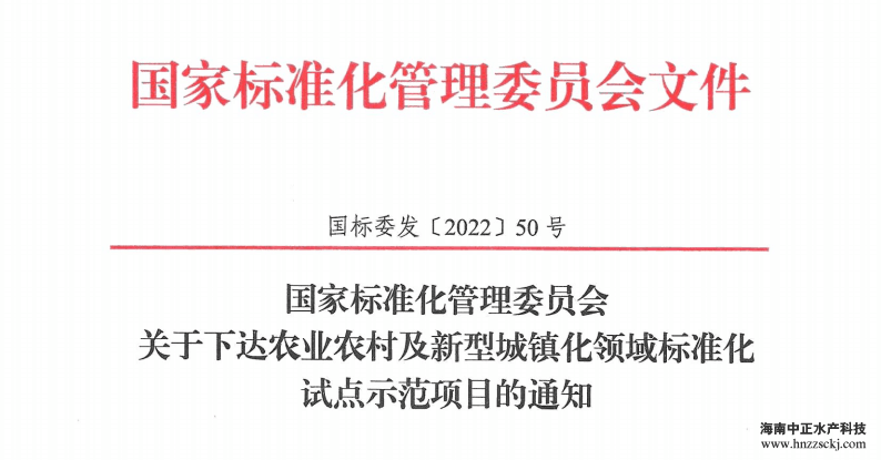 近日,國(guó)家標(biāo)準(zhǔn)化管理委員會(huì)發(fā)布關(guān)于下達(dá)農(nóng)業(yè)農(nóng)村及新型城鎮(zhèn)化領(lǐng)域標(biāo)準(zhǔn)化試點(diǎn)示范項(xiàng)目的通知,在第十一批國(guó)家農(nóng)業(yè)標(biāo)準(zhǔn)化示范區(qū)項(xiàng)目中,中正水產(chǎn)作為海南省唯一一家企業(yè),成功入選第十一批國(guó)家農(nóng)業(yè)標(biāo)準(zhǔn)化示范區(qū)項(xiàng)目。
